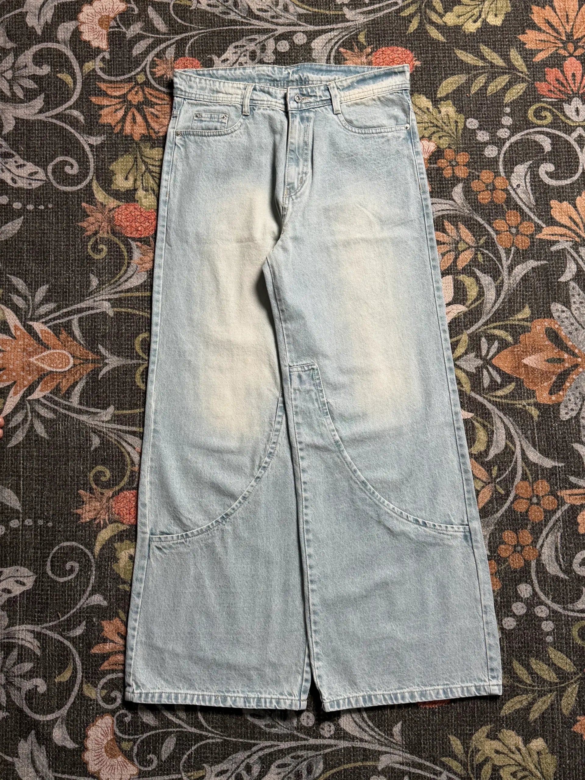 3.Length (OUTSEAM)Lay the jeans flat and measure from the top of the waistband down the outside edge of the leg to the hem. This is your outseam length, which determines the overall length of the jeans.