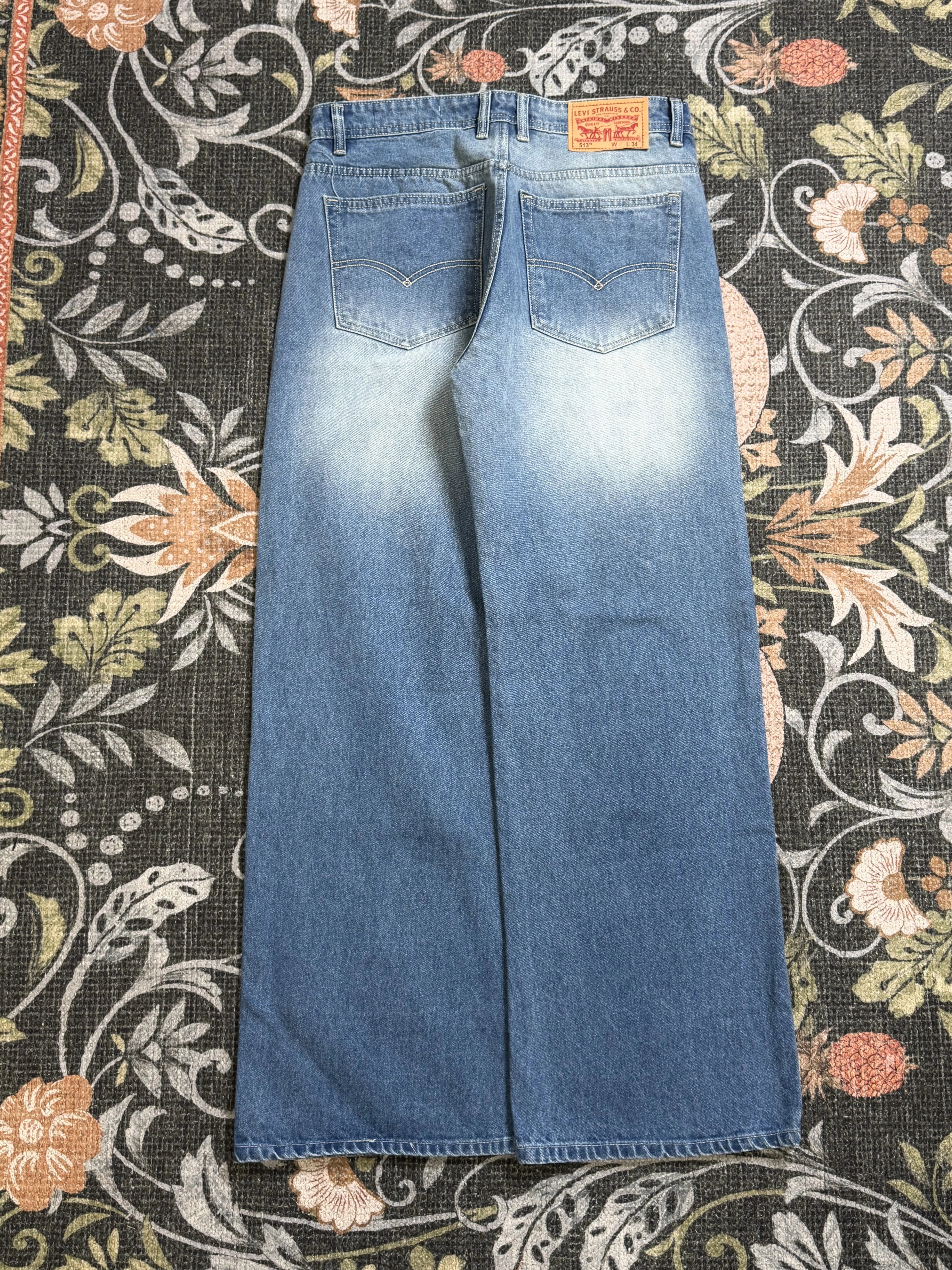 Lay one leg flat and measure across the bottom hem. Double this number to get the total leg opening. This measurement affects how the jeans fall over your shoes — from tapered to wide-leg styles.